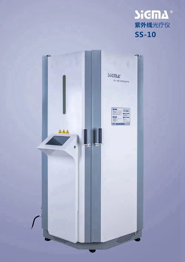 UVB紫外线光疗是临床上治疗银屑病的常用物理疗法,窄谱中波紫外线(NB-UVB)疗法,范围为310-315nm,主要波长为311nm。适用于静止期冬季型寻常银屑病,并广泛应用于其他皮肤病的治疗。